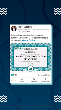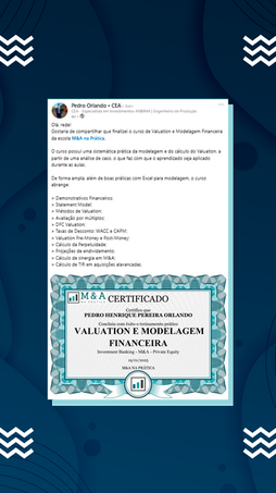 O certificado reconhecido pelo mercado de que você está apto a atuar em M&A e Private Equity, o segmento mais disputado do mercado financeiro.